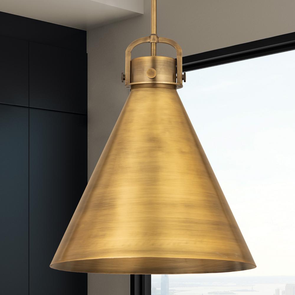 Newton Cone - 1 Light - 18 inch - Brushed Brass - Brushed Brass Shade - Pendant
