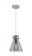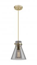 Newton Cone - 1 Light - 8 inch - Brushed Brass - Light Smoke Shade - Cord hung - Pendant