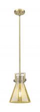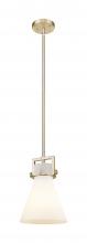 Newton Cone - 1 Light - 8 inch - Brushed Brass - Stem hung - Mini Pendant