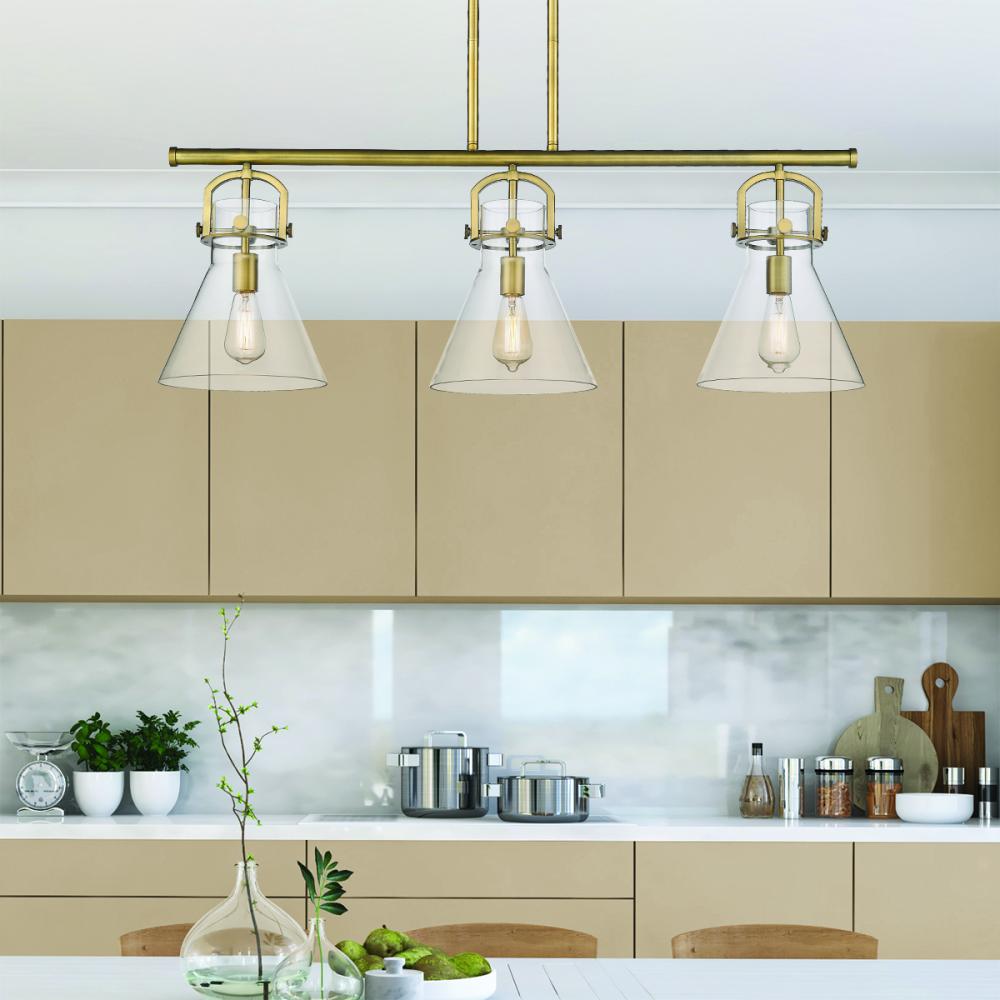 Newton Cone - 3 Light - 42 inch - Brushed Brass - Clear Shade - Island Light