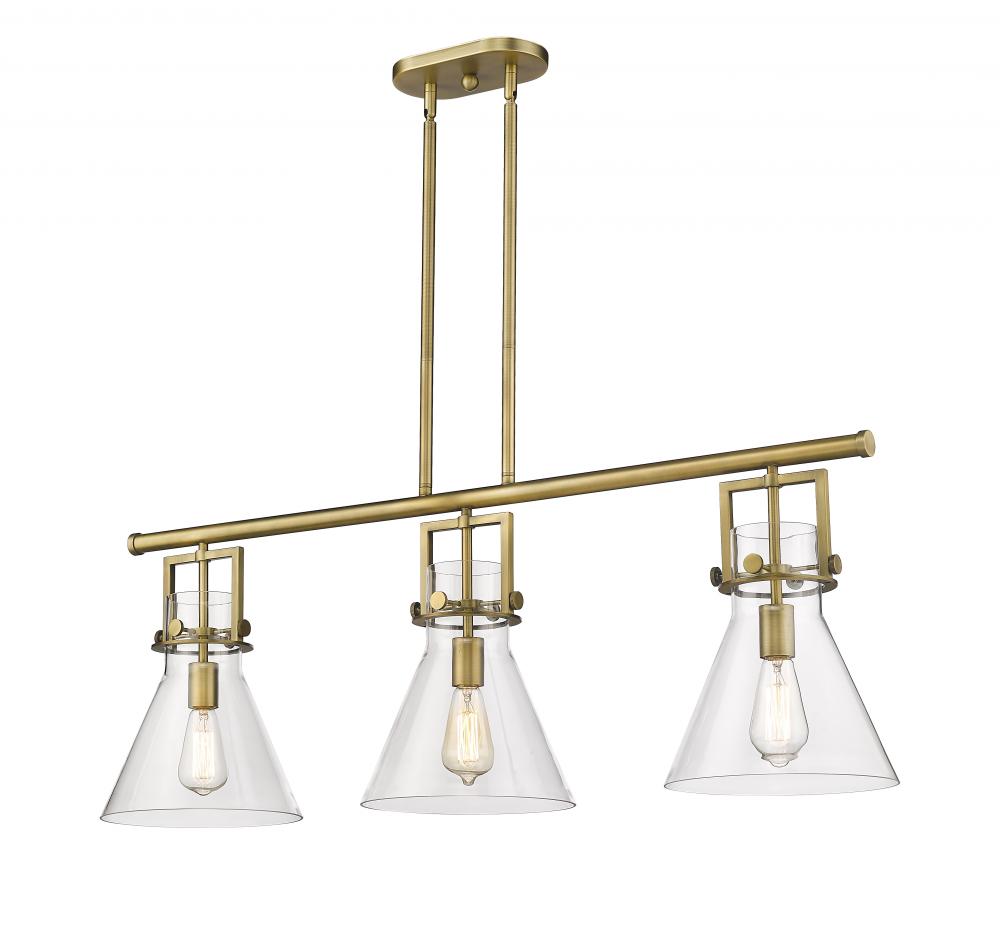 Newton Cone - 3 Light - 42 inch - Brushed Brass - Clear Shade - Island Light