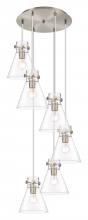 Newton Cone - 6 Light - 19 inch - Brushed Brass - Clear Shade - Multi Pendant
