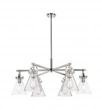 Newton Cone - 6 Light - 26 inch - Brushed Brass - Clear Shade - Chandelier