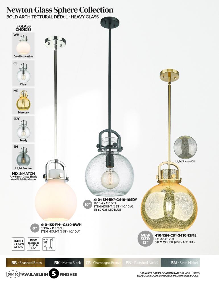 The Newton is a modern industrial collection that incorporates Exceptional architectural details and heavy metal design. These fixtures come together with a cone, bell, or sphere shaped shade, in metal or glass. Making this collection perfect for creating