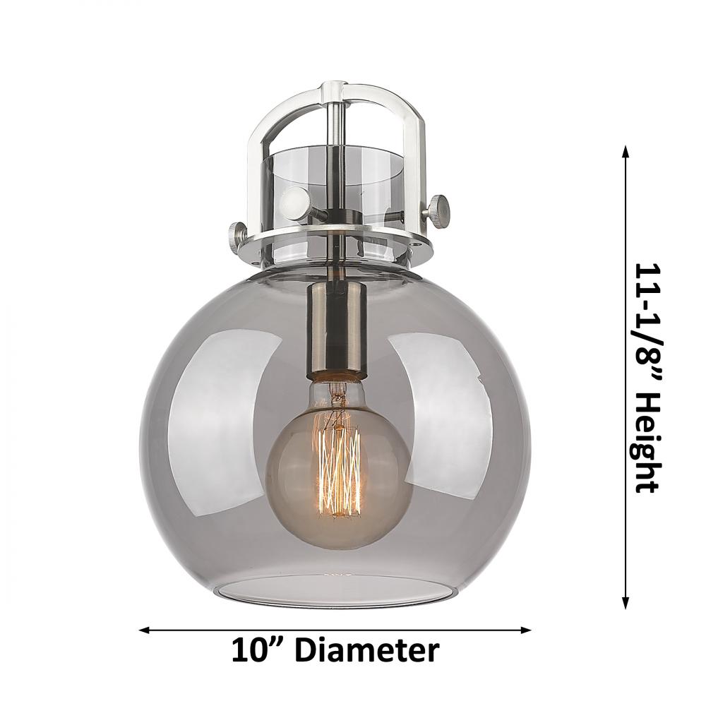 Newton Sphere - 1 Light - 10 inch - Brushed Brass - Light Smoke Shade - Stem Hung - Mini Pendant