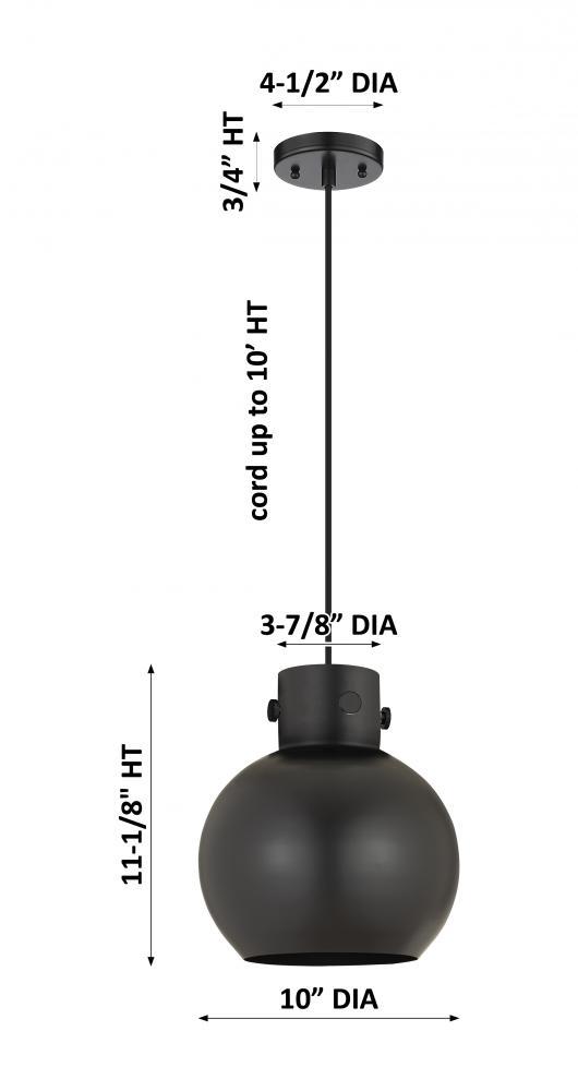 Newton Sphere - 1 Light - 10 inch - Matte Black - Matte Black Shade - Cord hung - Pendant
