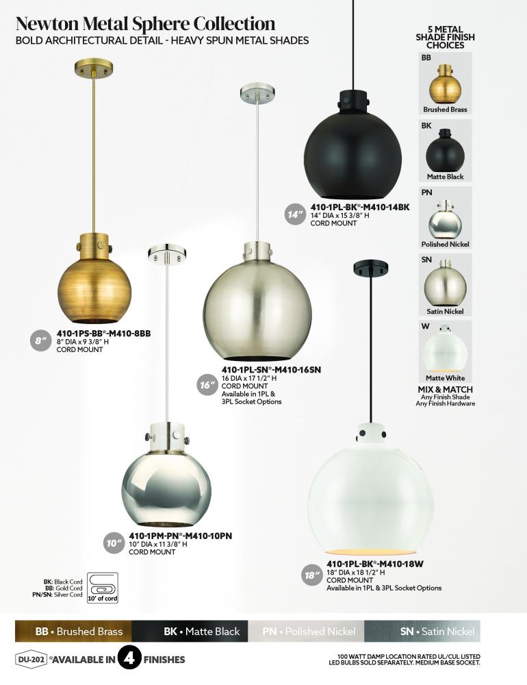 The Newton Sphere is a modern industrial collection that incorporates exceptional architectural details with a beautiful globe shaped shade. The iconic sphere shaped shade is available in either glass or heavy spun metal, making this collection perfect fo