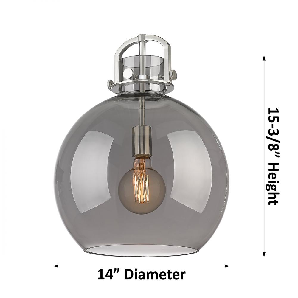 Newton Sphere - 1 Light - 14 inch - Brushed Brass - Light Smoke Shade - Pendant