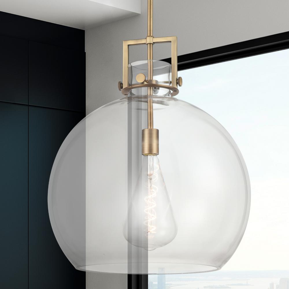 Newton Sphere - 1 Light - 18 inch - Brushed Brass - Clear Shade - Pendant