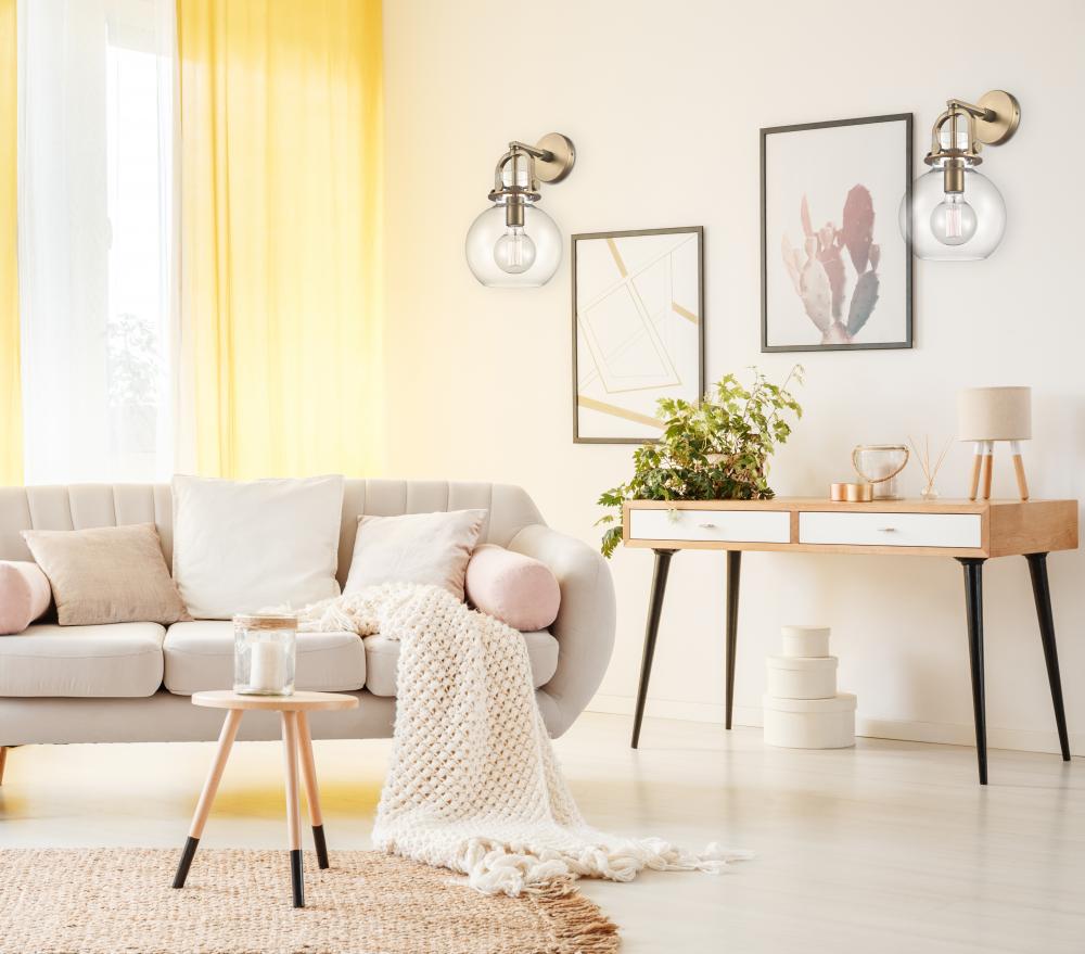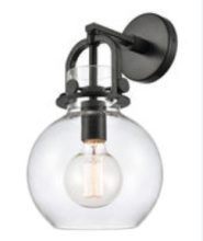 Newton Sphere - 1 Light - 8 inch - Brushed Brass - Clear Shade - Sconce