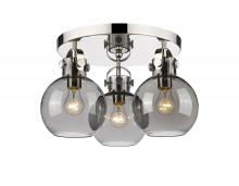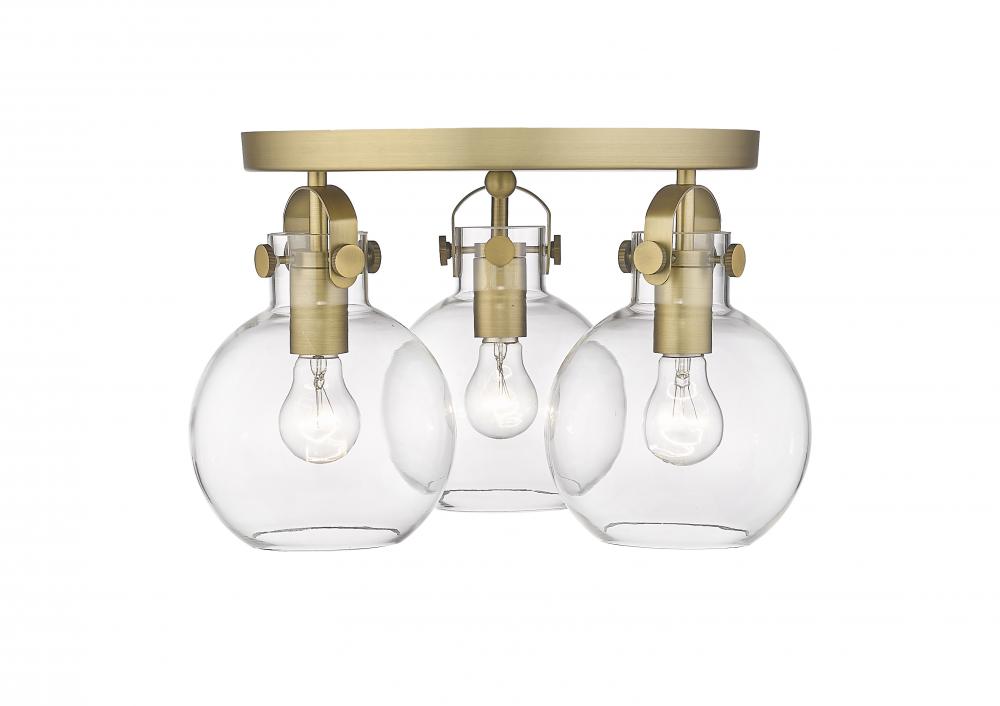 Newton Sphere - 3 Light - 18 inch - Brushed Brass - Clear Shade - Semi-Flush Mount