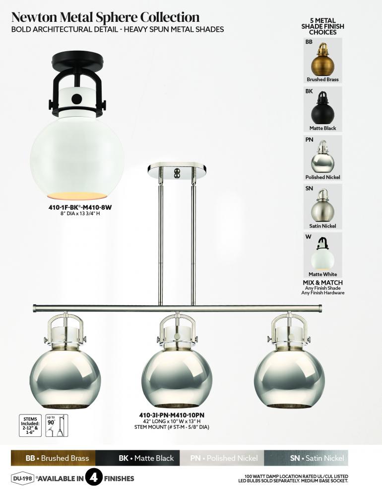 The Newton Sphere is a modern industrial collection that incorporates exceptional architectural details with a beautiful globe shaped shade. The iconic sphere shaped shade is available in either glass or heavy spun metal, making this collection perfect fo