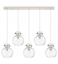 Newton Sphere - 5 Light - 40 inch - Brushed Brass - Clear Shade - Linear Pendant