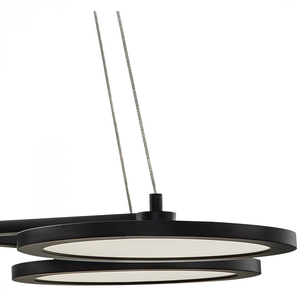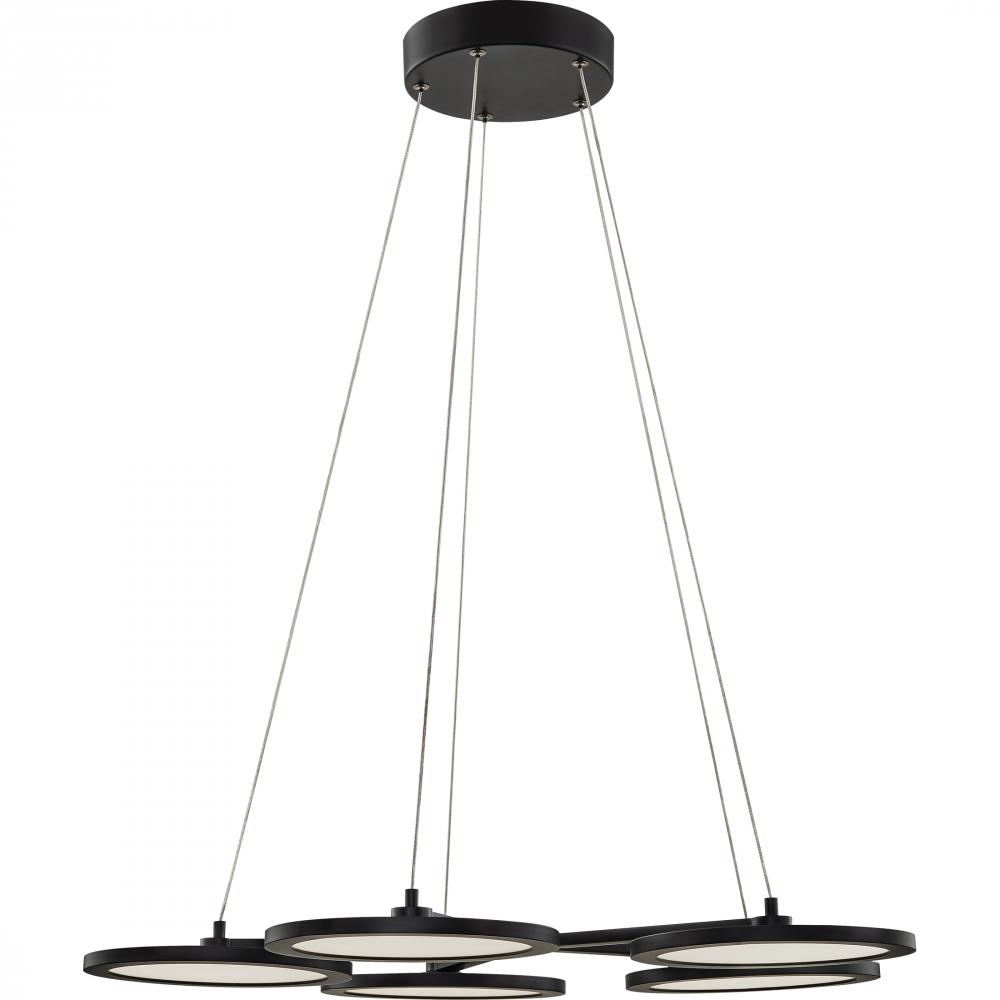 Create a sleek and contemporary look with the Nitro collection. This fixture uses minimal design details and comes in a Matte Black or White Lustre finish. The suspended discs use integrated LED technology to emit a warm glow while also saving energy.