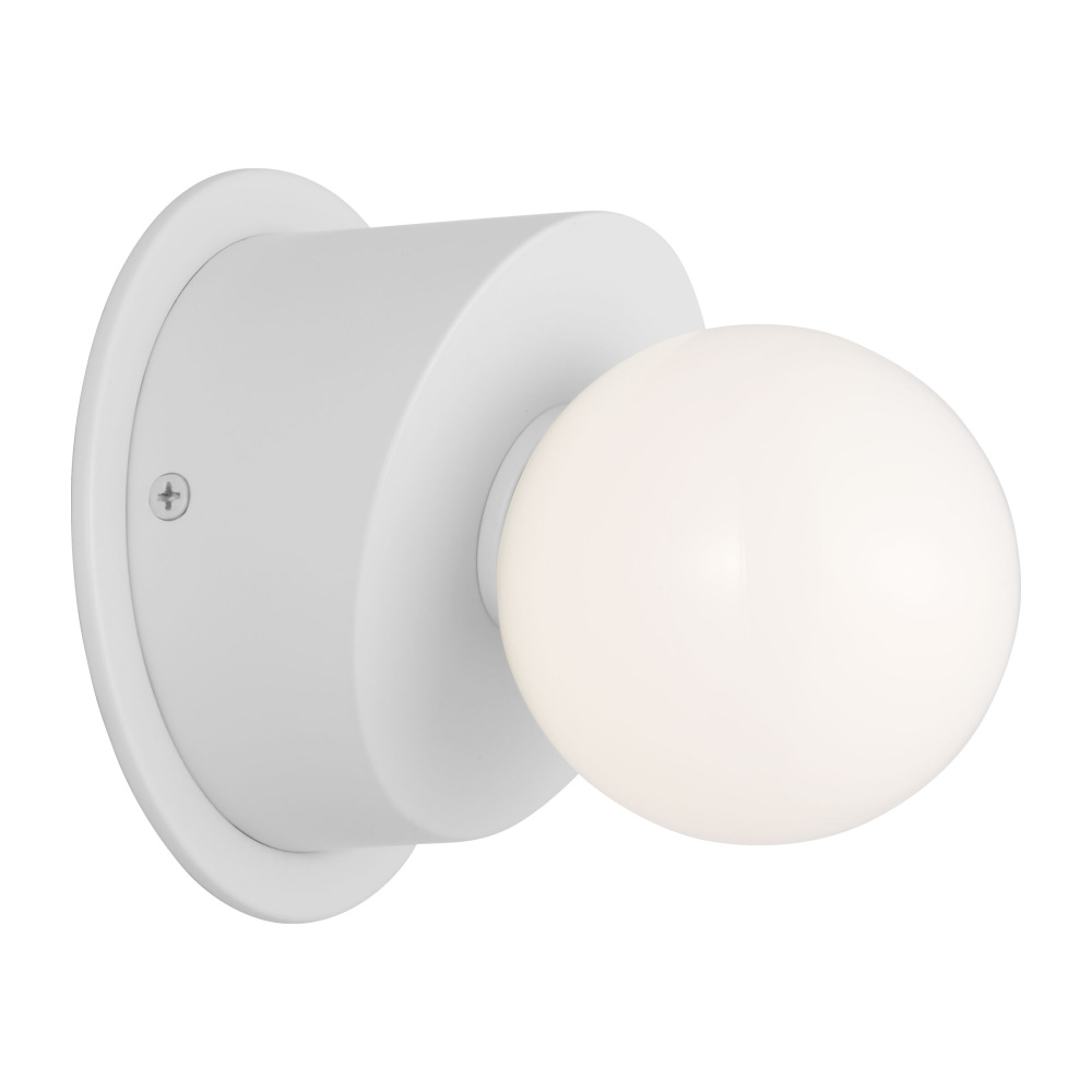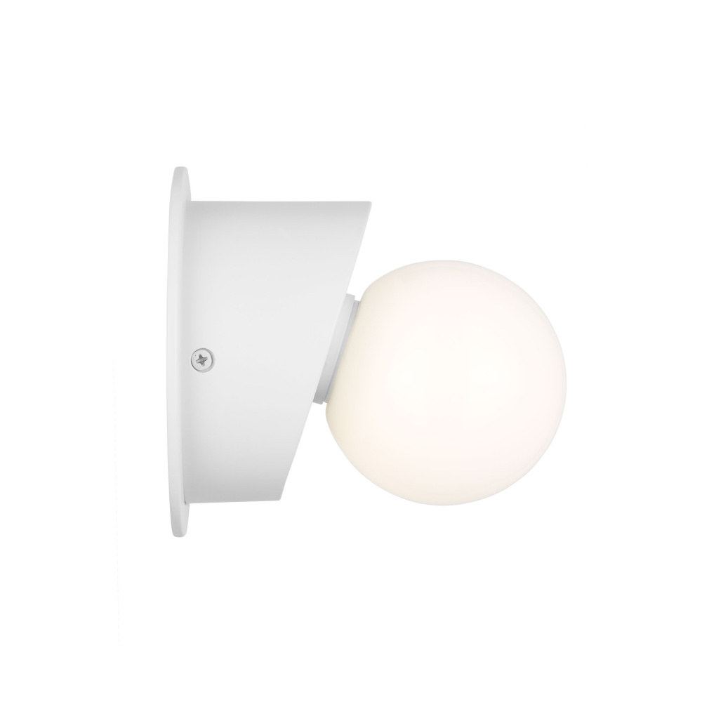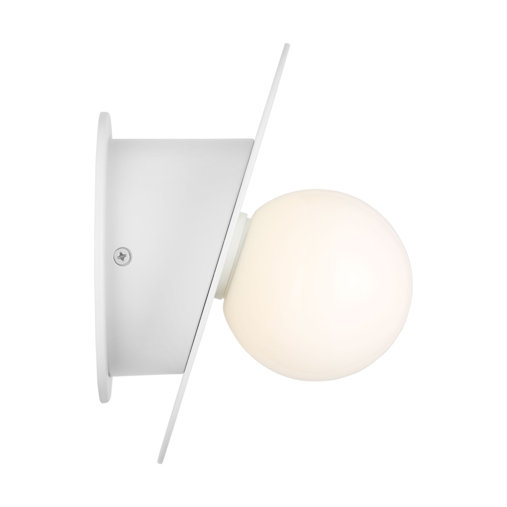 Nodes task, ceiling and wall lighting is minimal yet bold, highlighting Kelly's distinctive juxtaposition of mixed-materiality and curvilinear form. Light radiates from milk glass globes set against metal discs. All fixtures can be used or without the discs. The cast canopy is available in modern finishes. Hanging fixtures within this family feature black fabric cords, while pivot sconces can be cord and plug or hard wire.