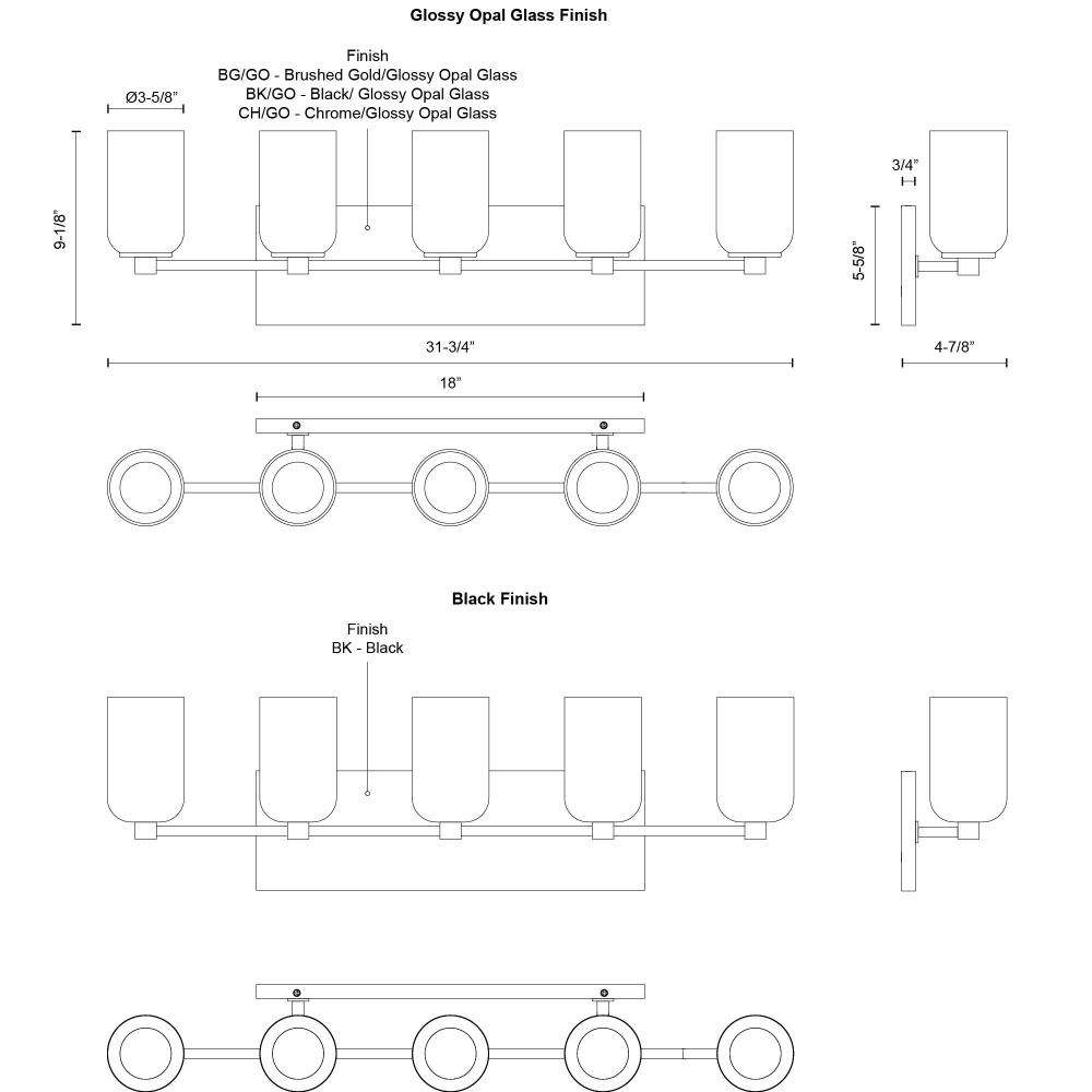 Kuzco Lighting VL57732-BG/GO - Nola 31-in Brushed Gold/Glossy Opal Glass Socket Vanity Light