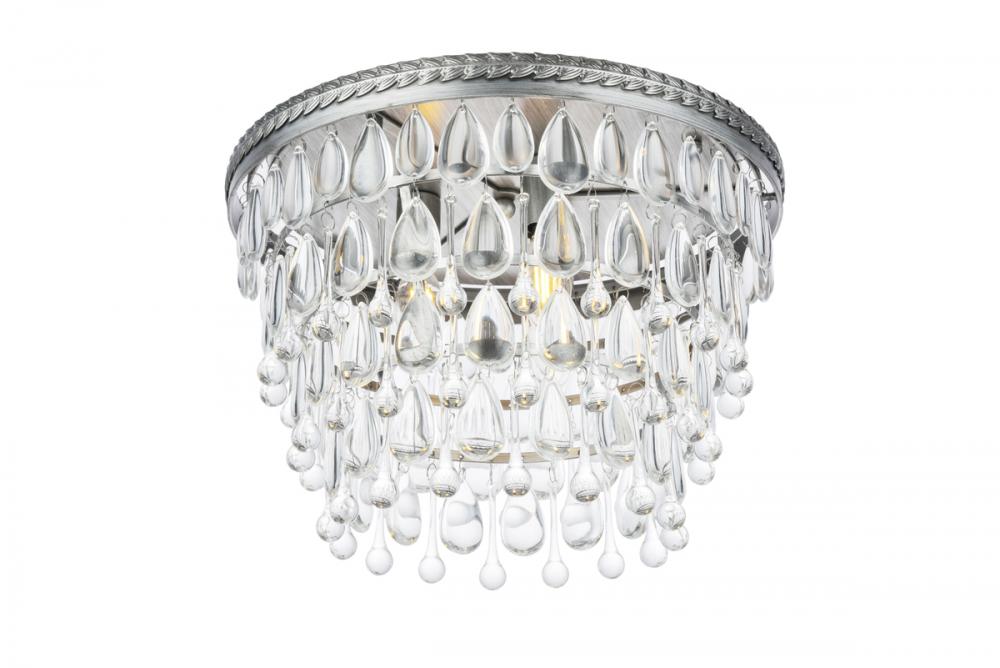 Elegant 1219F15AS/RC - Nordic 3 light antique silver Flush Mount Clear Royal Cut Crystal
