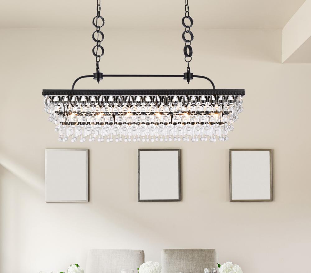 Mulitple layes of clear crystals reflect the soft glow of 6 candelabra bulbs