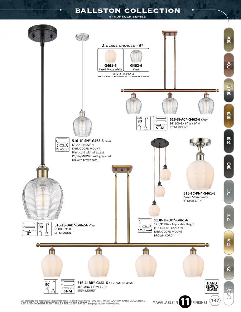 The Ballston collection is comprised of heavy cast components that give the fixture a sturdy contemporary look. We offer the fixture in 11 finishes with a Bare Bulb look or with over 100 possible metal and glass shade options that can change the style to f