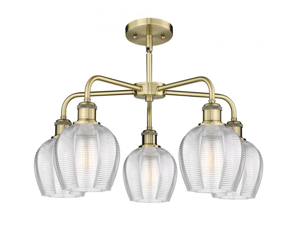 Norfolk - 5 Light - 24 inch - Antique Brass - Clear Shade - Chandelier
