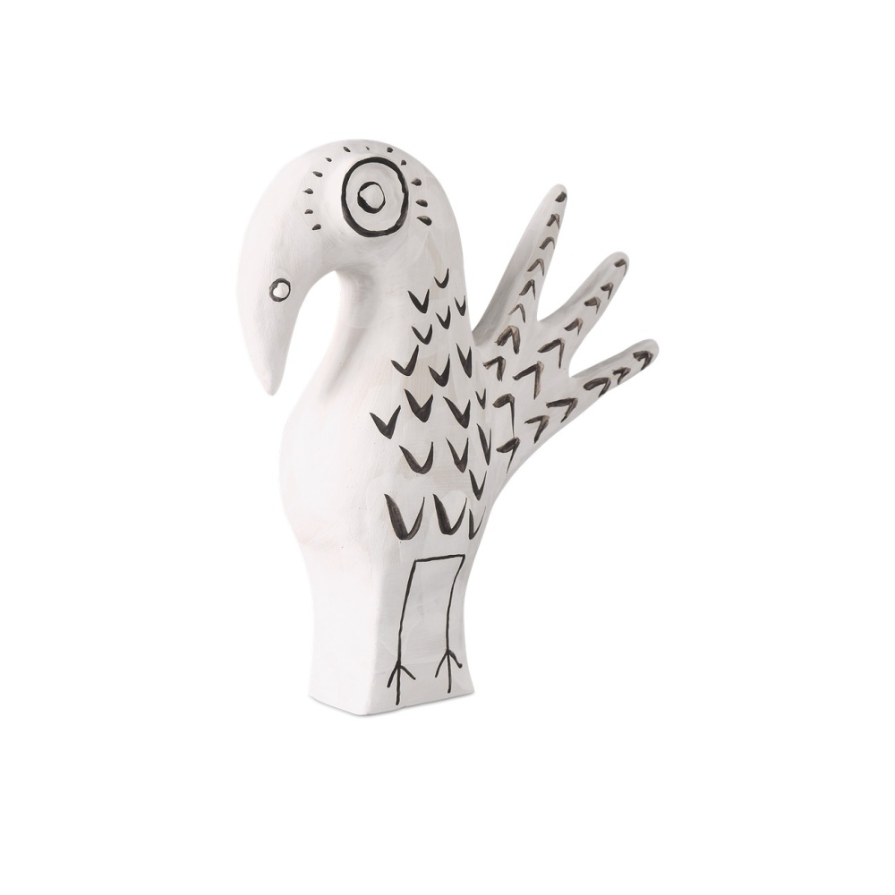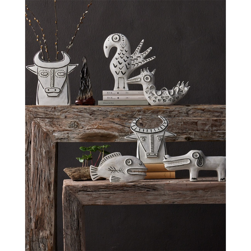 Artist Xiang Yang, a brilliant ceramist, took a walk on the wild side when he created Norman the Peacock. Made of porcelain in a washed-white finish with black whimsical details painted by the artist, the haunting vessel will create a stir not unlike Picasso's work did during his ceramics period as he experimented in the South of France.