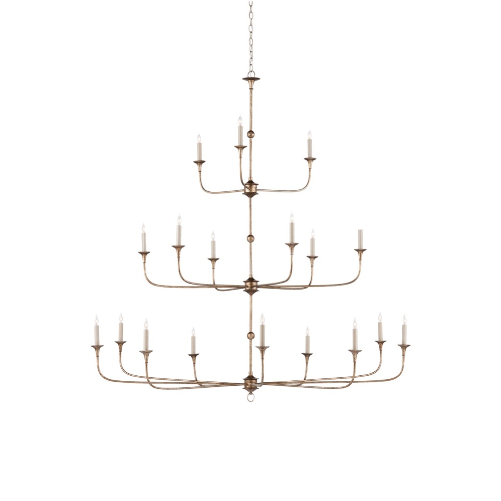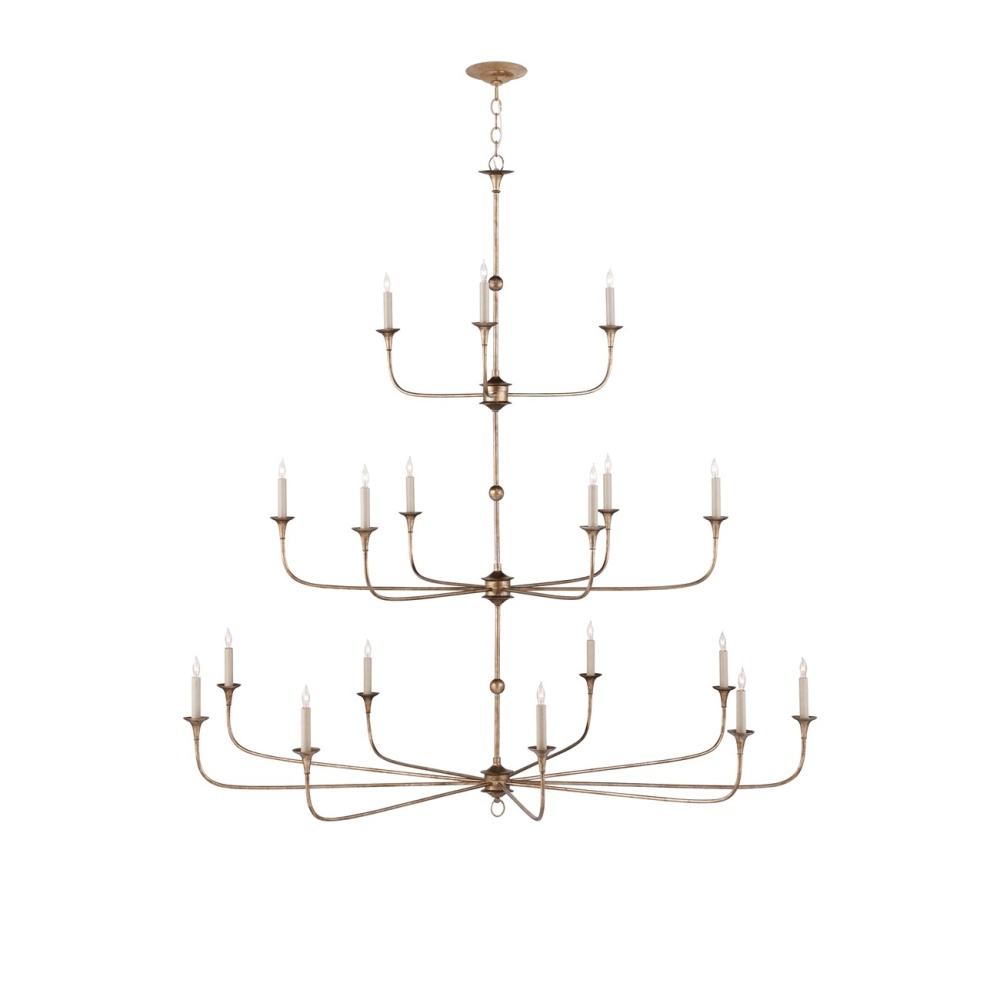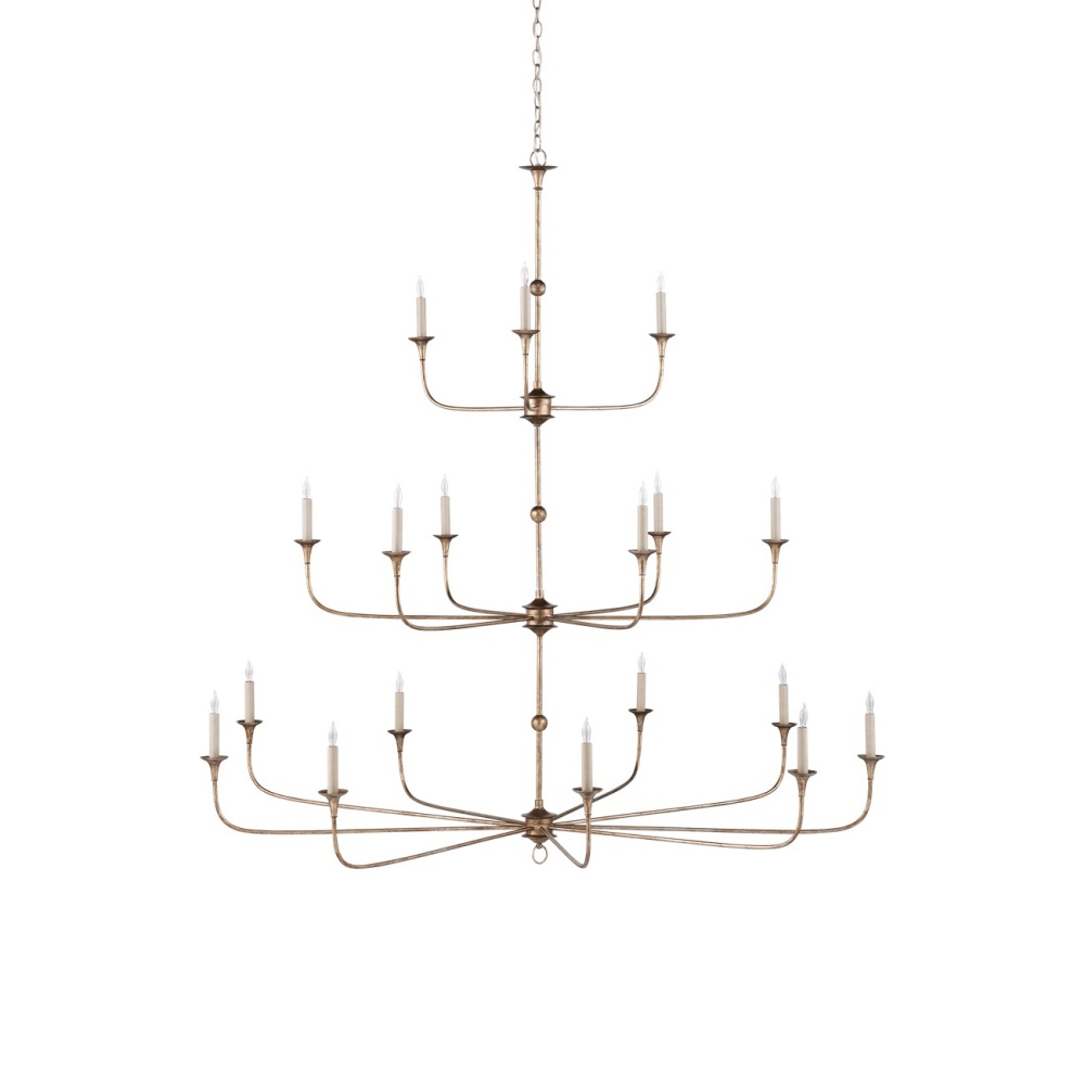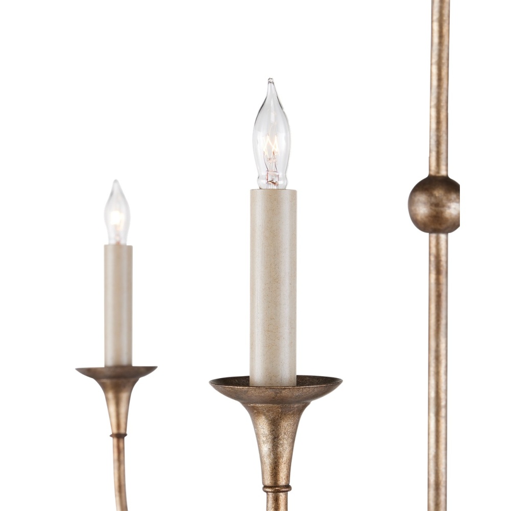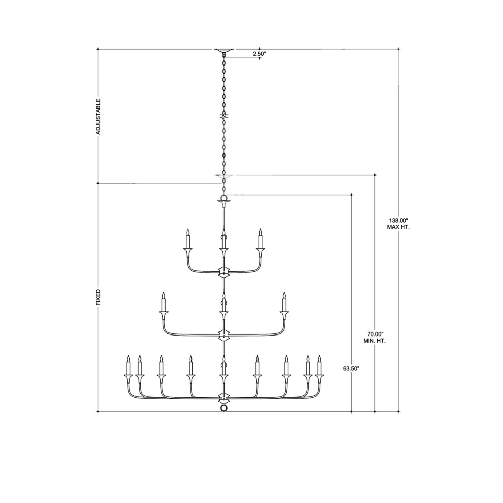 Design notes on the Nottaway Grande Bronze Chandelier include long arms that stretch gracefully from small cogs and a ring that ornaments its bottom-most point. The profile of the fixture has a lovely fluidity to it, and the Pyrite bronze finish adds textural interest to the bronze chandelier. This statuesque chandelier is decidedly in the traditional design category, , but its airiness allows it to function in a range of large rooms. Adjustable from 70" to 138" with use of included chain/rod kit/cable. If your space calls for a longer drop, additional chain/rods/cable is available for purchase.