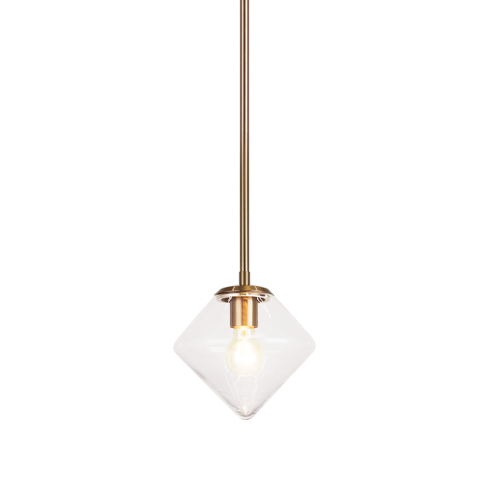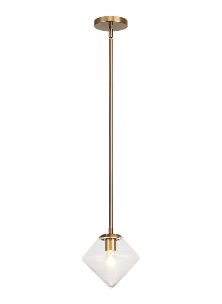 Novo is modern yet classic – available in the form of pendant, chandelier, wall sconce, and flush mount. The rods and base are either Aged Gold Brass or Black finish paired with a contrasting Opal or Clear round glass and diamond shaped glass. The style is very versatile and will add beauty to multiple rooms.