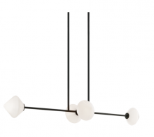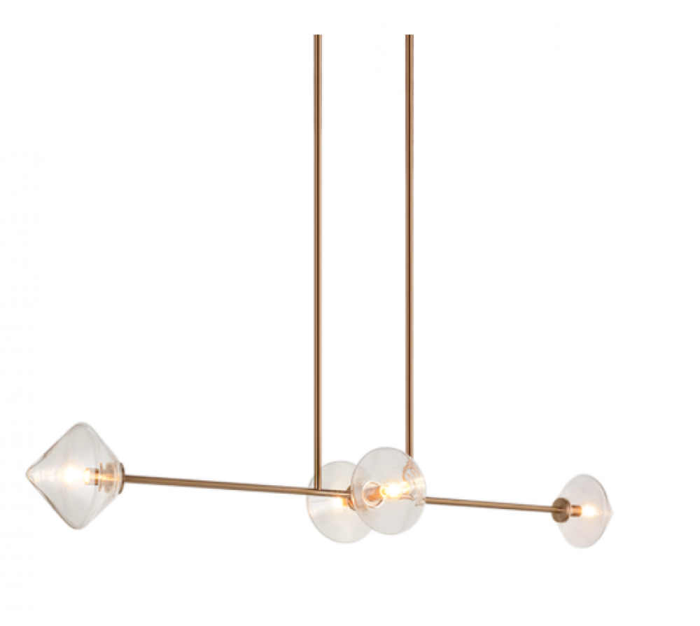 Novo is modern yet classic – available in the form of chandelier, wall sconce, and flush mount. The rods and base are either Aged Gold Brass or Black finish paired with a contrasting Opal or Clear round glass and diamond shaped glass. The style is very versatile and will add beauty to multiple rooms.