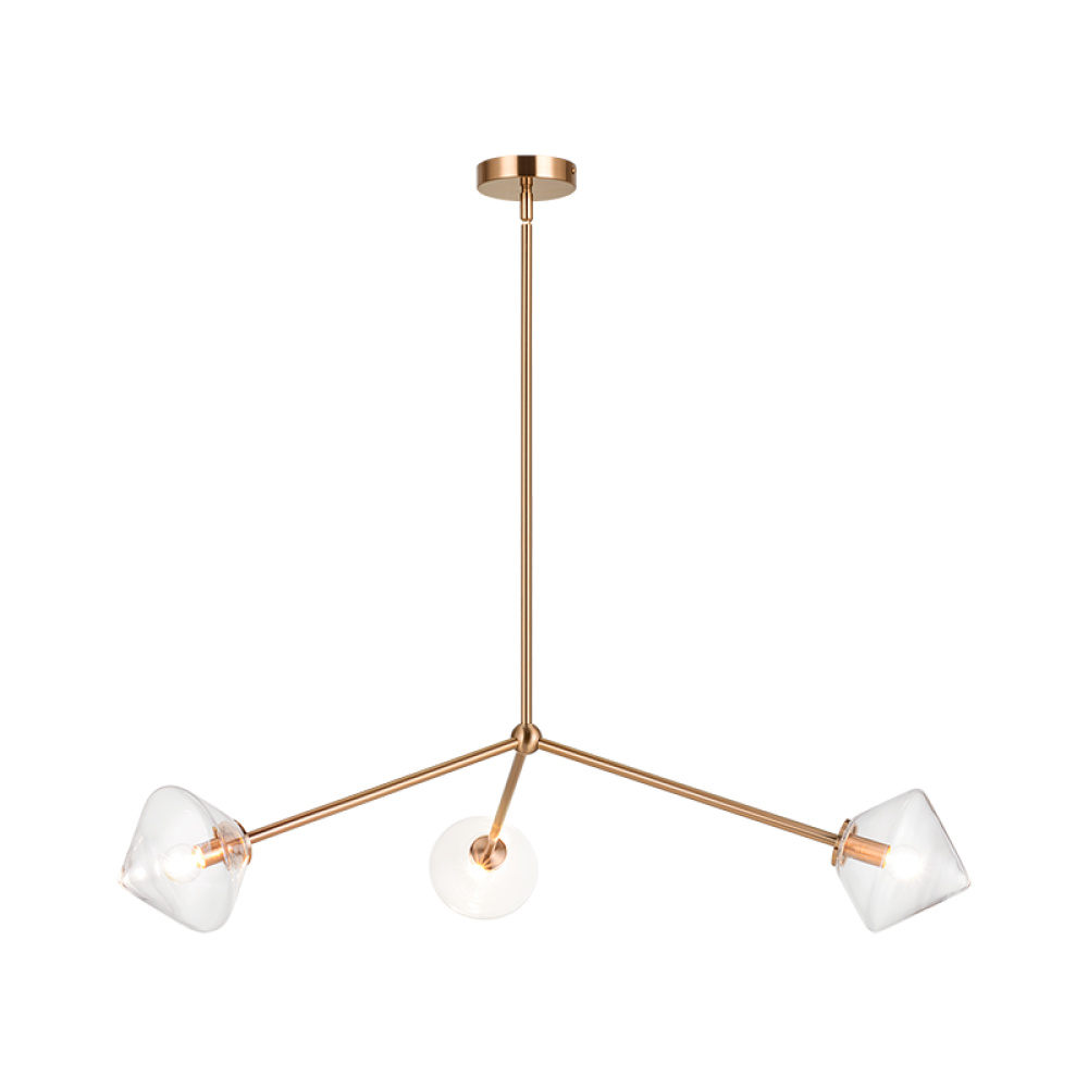 Novo is modern yet classic – available in the form of chandelier, wall sconce, and flush mount. The rods and base are either Aged Gold Brass or Black finish paired with a contrasting Opal or Clear round glass and diamond shaped glass. The style is very versatile and will add beauty to multiple rooms.