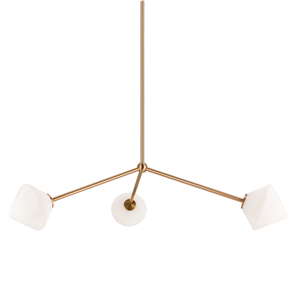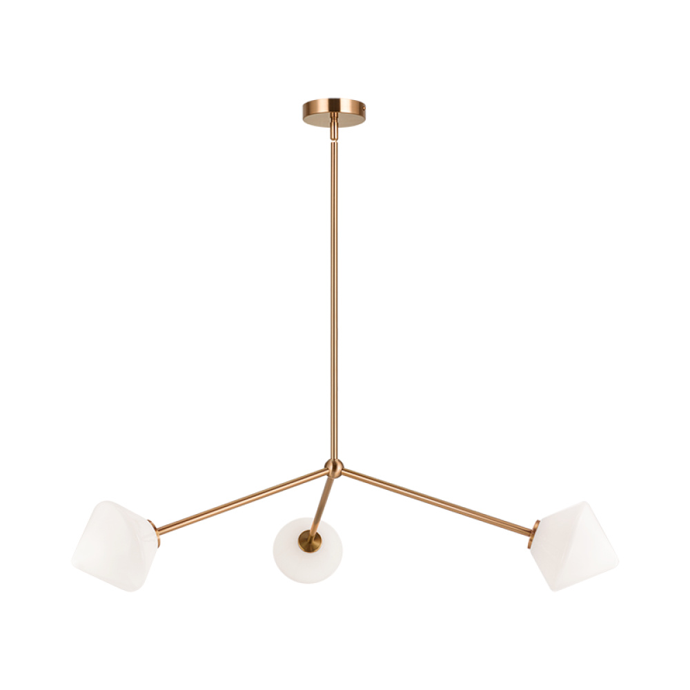 Novo is modern yet classic – available in the form of chandelier, wall sconce, and flush mount. The rods and base are either Aged Gold Brass or Black finish paired with a contrasting Opal or Clear round glass and diamond shaped glass. The style is very versatile and will add beauty to multiple rooms.