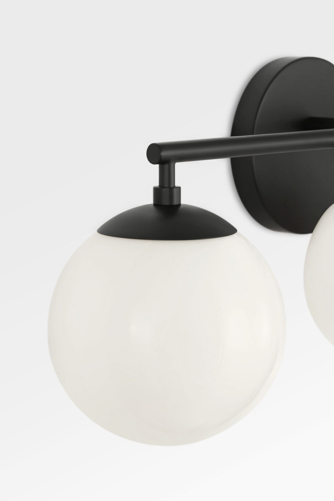 The Nube Vanity fixtures reinterpret the floating globe motif for wall-mount use. Whether in the 1?Light, 2?Light, or 3?Light format, milk glass spheres appear to hover just beneath a horizontal bar mounted to the wall plate. Designed for bathrooms, powder rooms, or corridor lighting, the vanity series provides flattering illumination at face height while maintaining the airy silhouette of the chandelier variants.
