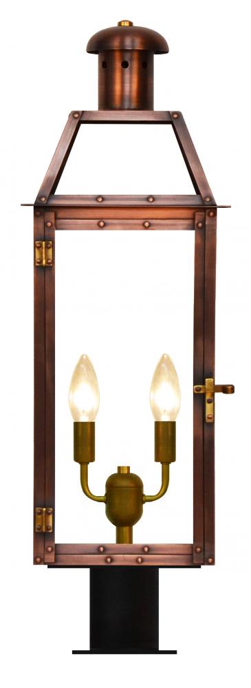 Size 20 Electric Copper Lantern, 2 candelabra base sockets, with Post Fitter, Post Fitter Adaptor
