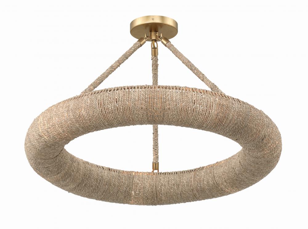 Elevate your space with the Oakley ring chandelier, an artisan masterpiece that blends natural charm with exquisite craftsmanship. With its open-top design, this chandelier infuses a room with a soothing and relaxed ambiance, directing light upward while casting a soft, filtered glow downward. Crafted from natural Lake Grass in a warm, neutral tone, this fixture showcases intricate hand-wrapped details that add depth and character, reflecting the essence of skilled artisans. With dual mounting options, it effortlessly adapts to any space.