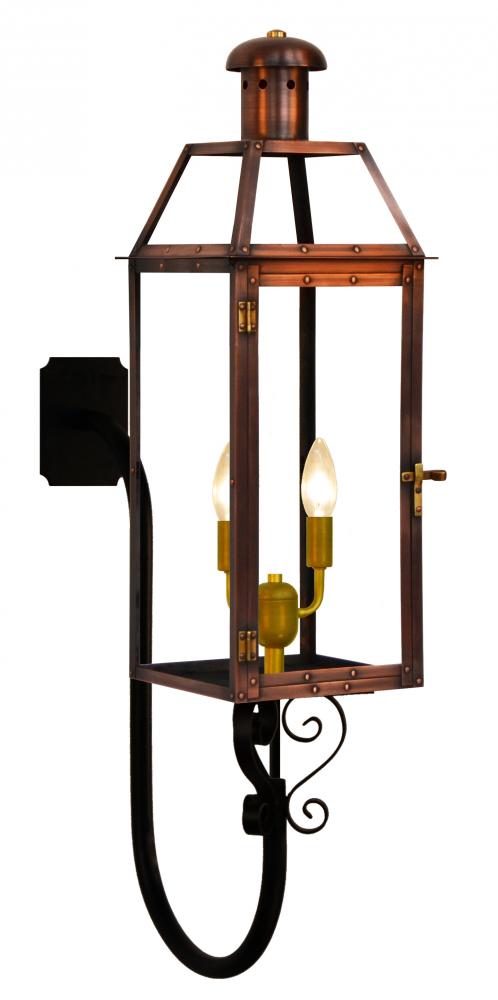 Size 25 Electric Copper Lantern, 2 candelabra base sockets, with Gooseneck with S-Scrolls