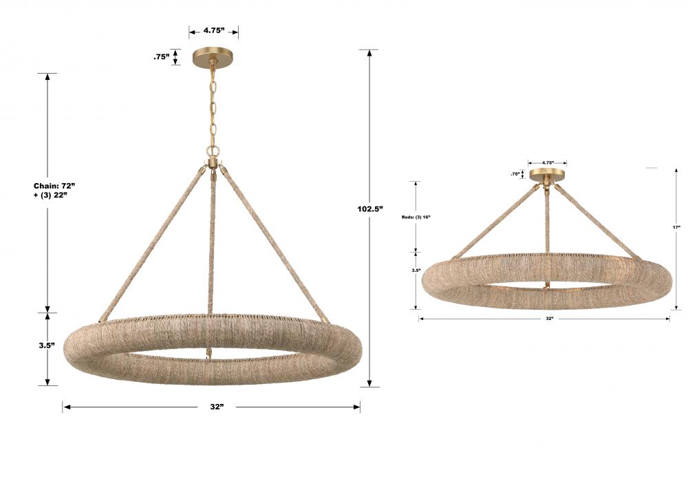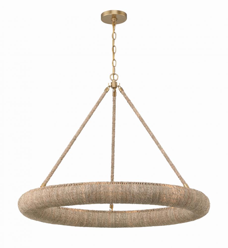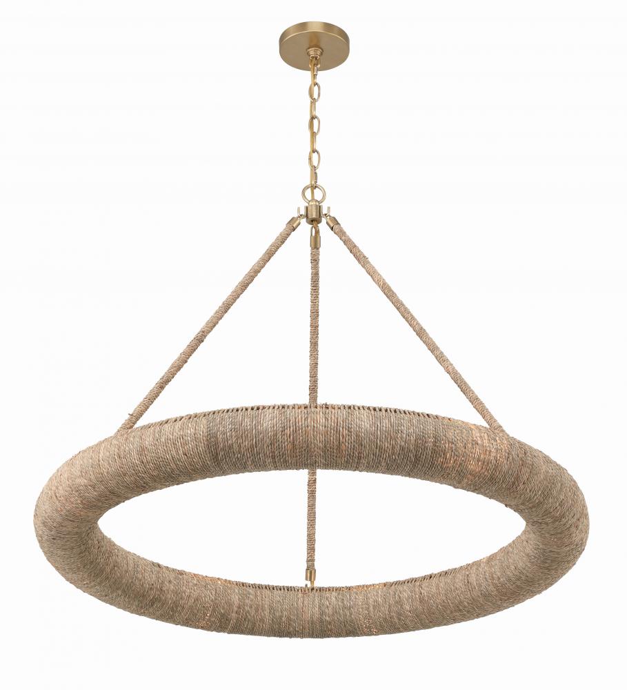 Elevate your space with the Oakley ring chandelier, an artisan masterpiece that blends natural charm with exquisite craftsmanship. With its open-top design, this chandelier infuses a room with a soothing and relaxed ambiance, directing light upward while casting a soft, filtered glow downward. Crafted from natural Lake Grass in a warm, neutral tone, this fixture showcases intricate hand-wrapped details that add depth and character, reflecting the essence of skilled artisans. With dual mounting options, it effortlessly adapts to any space.