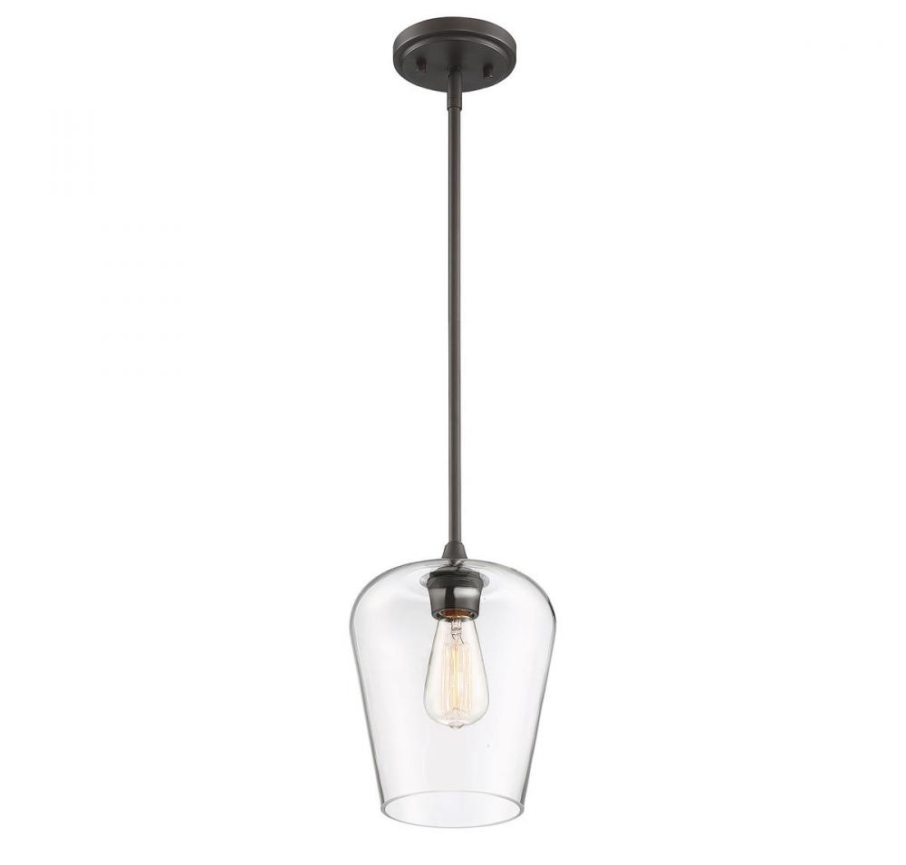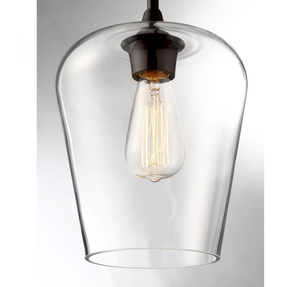 Get a pendant look with understated elegance when you get the Savoy House Octave 1-light pendant. It features a shade of curved clear glass, minimal detailing and a bold English bronze finish. Pendants are extremely versatile and can fit in many different spaces, such as kitchens, family rooms, great rooms, foyers, entryways, offices, bedrooms and bathrooms. The hanging height is adjustable and this pendant can be used on a sloped ceiling. Since the bulb is exposed, try using a stylized bulb (not included) like Edison style for a different twist! The fashionable warm brass finish can be paired with brass hardware or mixed with hardware in other finishes. Try the Octave with glam, transitional or contemporary style rooms for a chic look. When you choose a Savoy House lighting fixture, you can be certain you've selected a piece that will withstand the test of time.