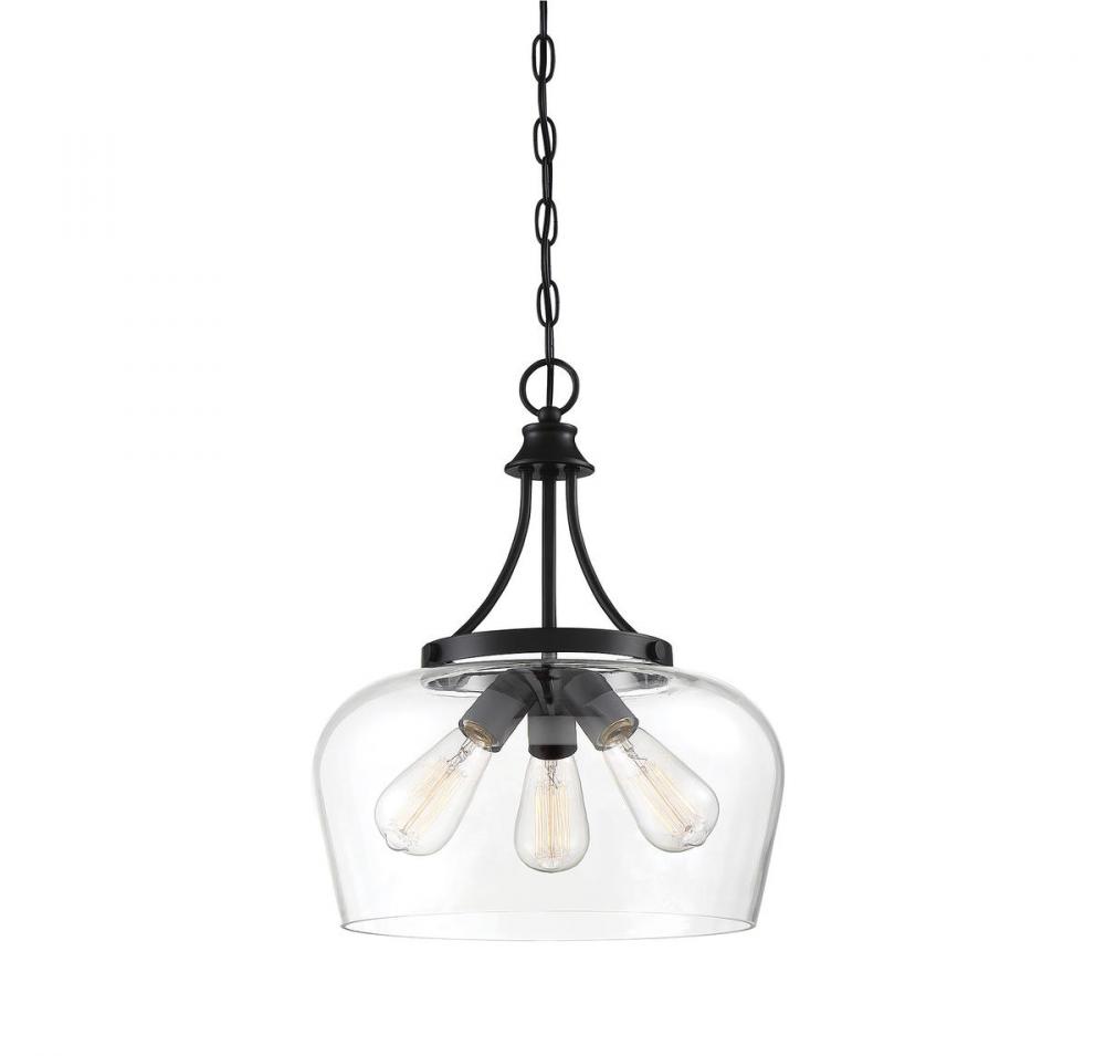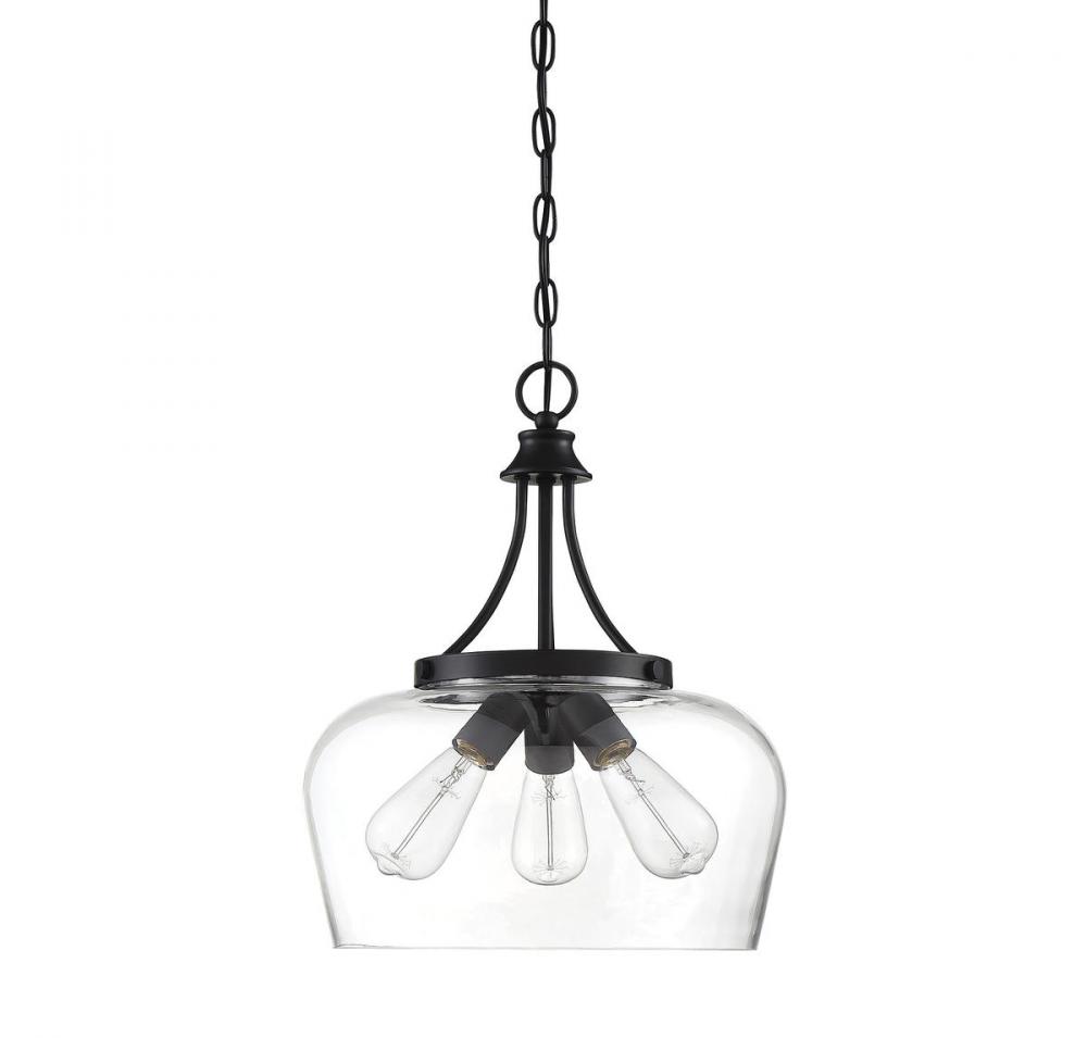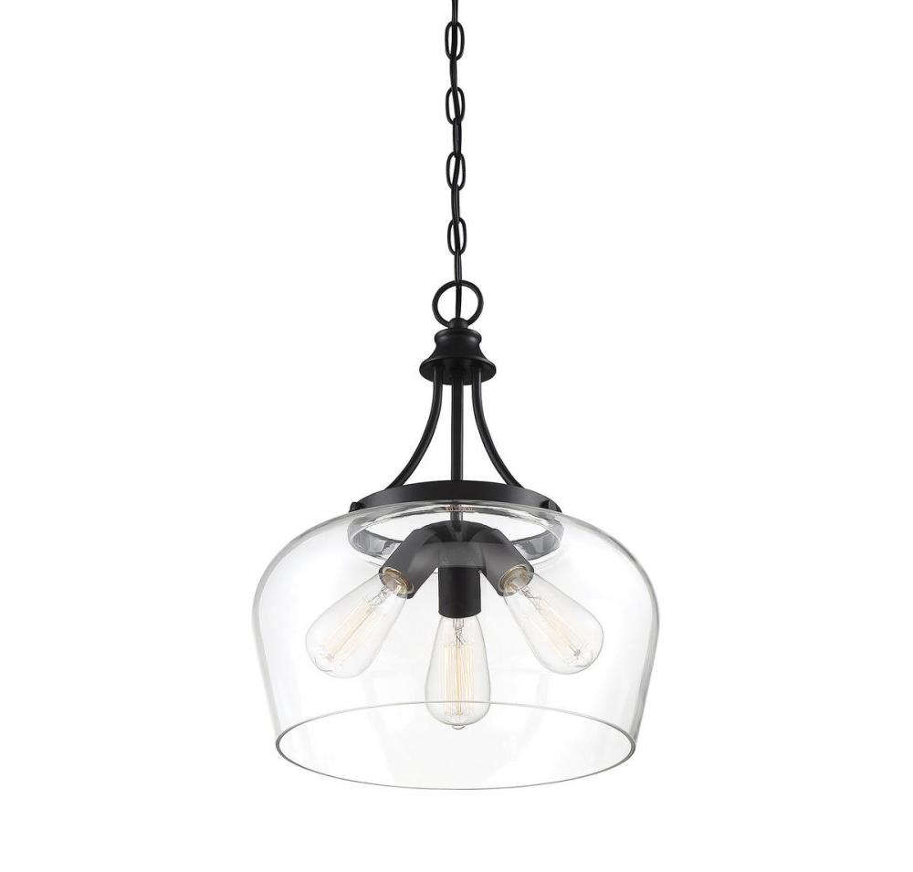 In the Savoy House Octave 3-light chandelier, bold black lines and a streamlined silhouette create an air of elegance and sophistication. The matte black finish and clear glass shade go with absolutely everything. If you have traditional, contemporary, transitional, vintage, modern farmhouse, industrial-inspired or an eclectic mix in your home, you’ll love the way this Octave pendant will stylishly fit right in. This 15" wide by 18" high fixture connects with a chain to adjust hanging height. Three standard-size bulbs will provide lovely illumination in your space, whether in a dining area, living room, entryway or bedroom.
