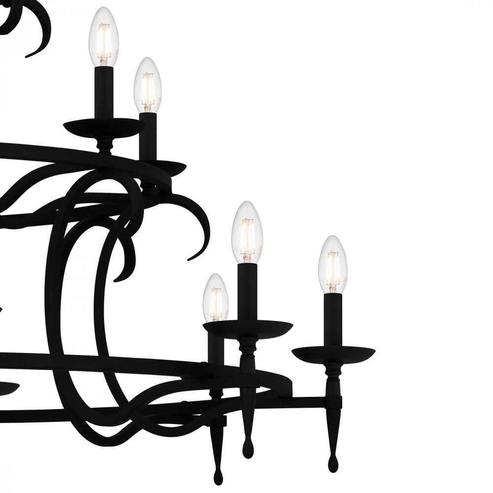Elegant scrollwork and aged brass accents make Octavia a standout in any room. The earth black silhouette features delicately curving arms and aged brass candle sleeves for a pop of shimmering gold. Octavia is available as a chandelier or wall sconce, and