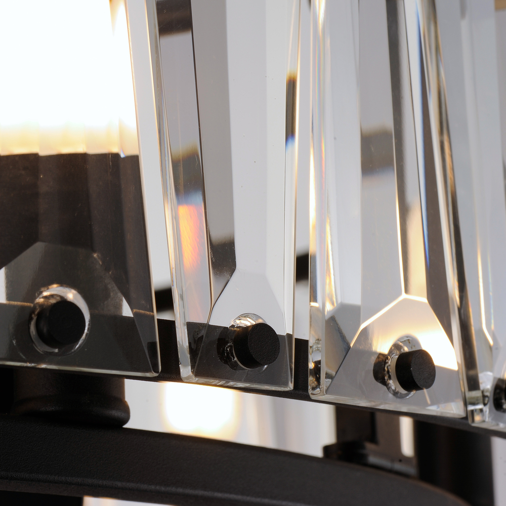 Boldly beveled tapered glass panels are arranged around a metal frame finished in either Black or elegant Golden Silver. Evocative of an earlier era, the glitz and glamor of the Odeon collection is a timeless choice for your interiors. Transform the look w