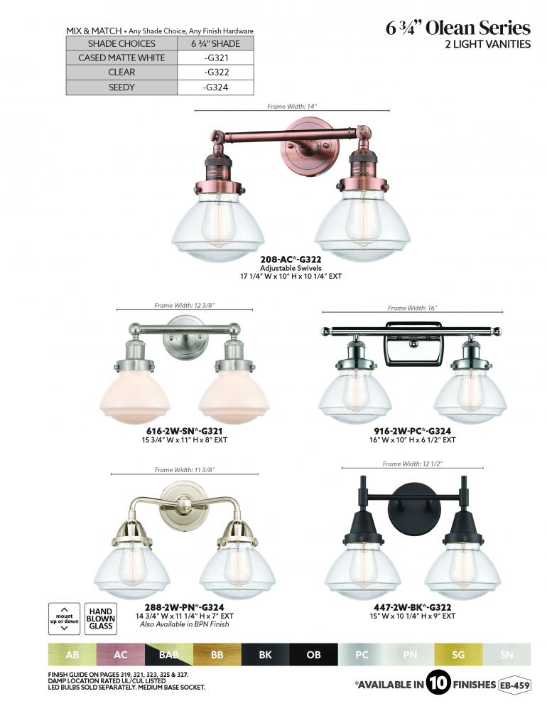 Innovations Lighting 208L-AB-G321 - Olean - 2 Light - 7 inch - Antique Brass - Adjustable Bath Vanity Light