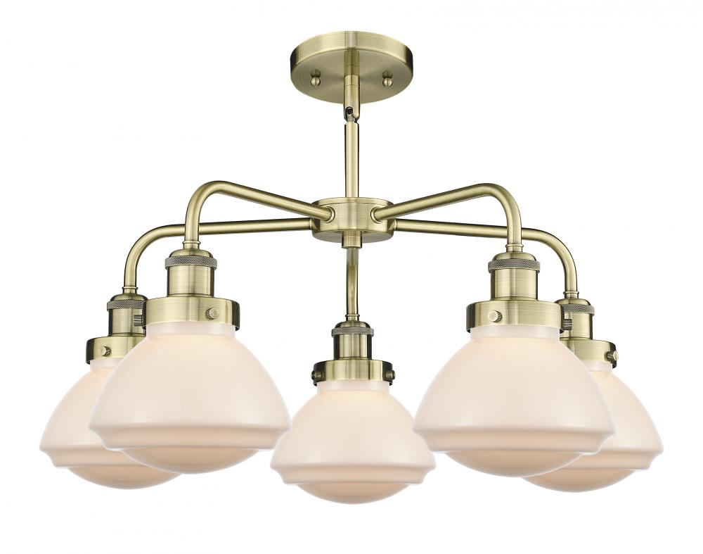 Olean - 5 Light - 25 inch - Antique Brass - Matte White Shade - Chandelier