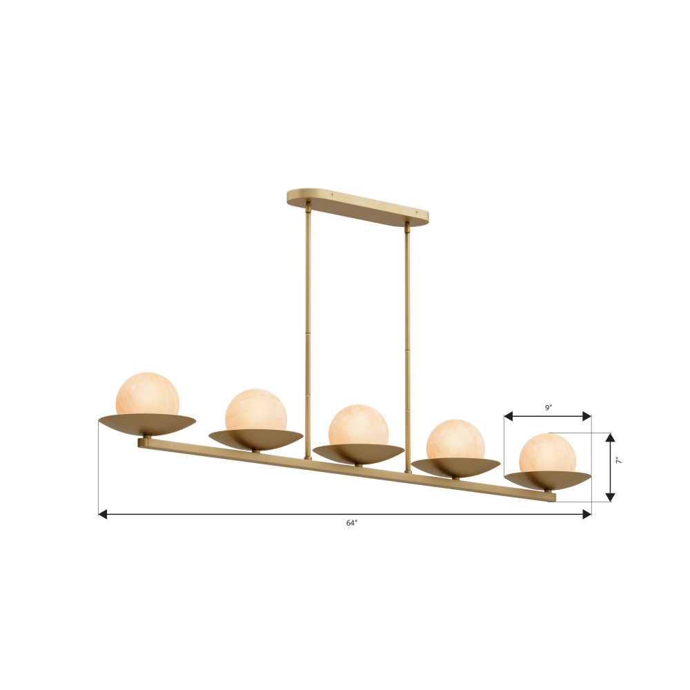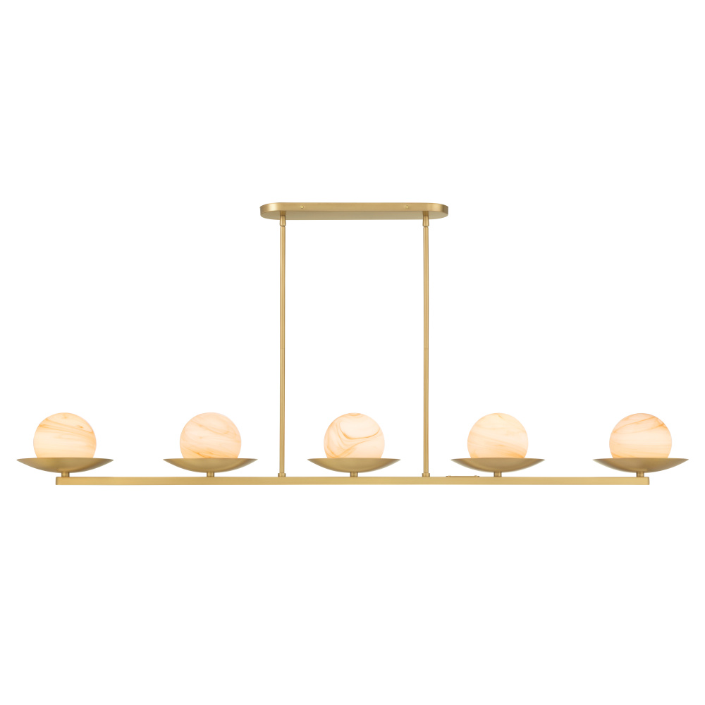 5-Light Linear Chandelier - Legacy Brass with Etched Amber Swirl Glass