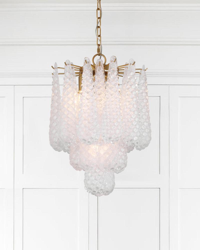 Inspired by vintage and mid-century design, the Ollie collection features hand-blown glass with intricate raised details. The beautiful hues of this collection shift subtly depending on whether the light is on or off, creating a dynamic and artistic effect. This unique piece blends mid-20th-century charm with a modern touch, making it a true statement fixture.