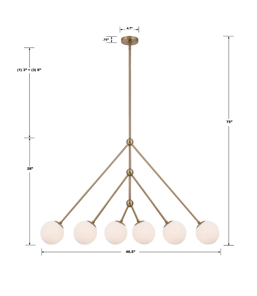 Crystorama OMN-3006-AG - Omni 46.5'' Aged Brass Linear Chandelier