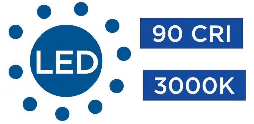 Brushed Nickel finish.;White glass diffuser.;Replaceable LED module.;Dimmable to 10% with many ELV dimmers;1,211 lumens 71.2 lumens/watt per module (source);3000K color temperature, 90+ CRI.