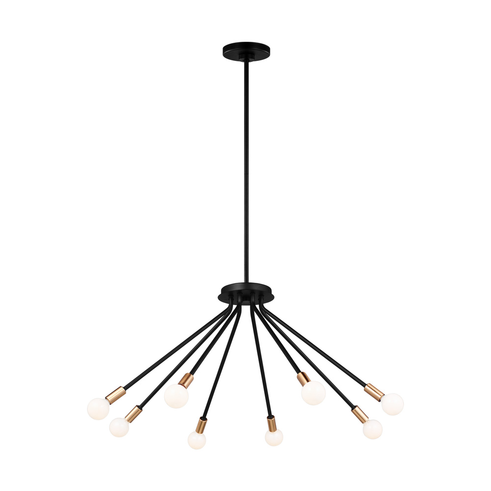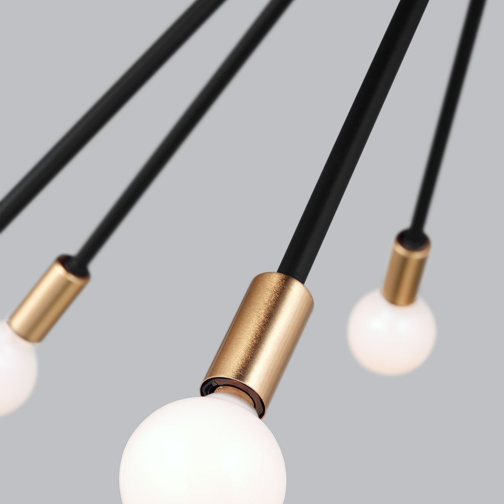 The Graham eight light chandelier in Midnight Black provides abundant light, while adding a layer of today's style to your interior design. Eight white glass globes splay out from the ceiling in various directions to provide you with ample ambient illumination. The brass and black finishes combine creating an elegant color palette that will work well in almost any decor.