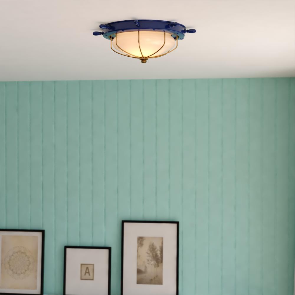 Orleans 15-in. W Flush Mount Navy Blue and Matte Gold