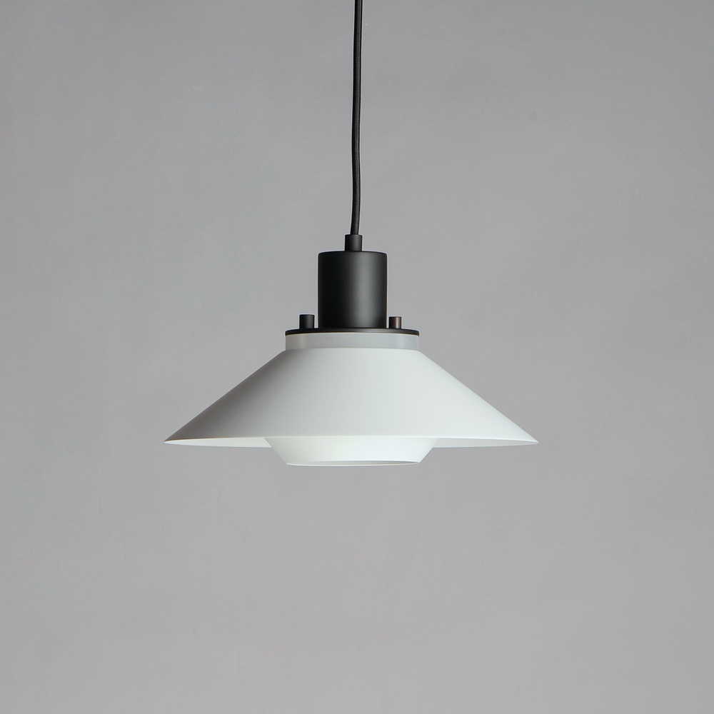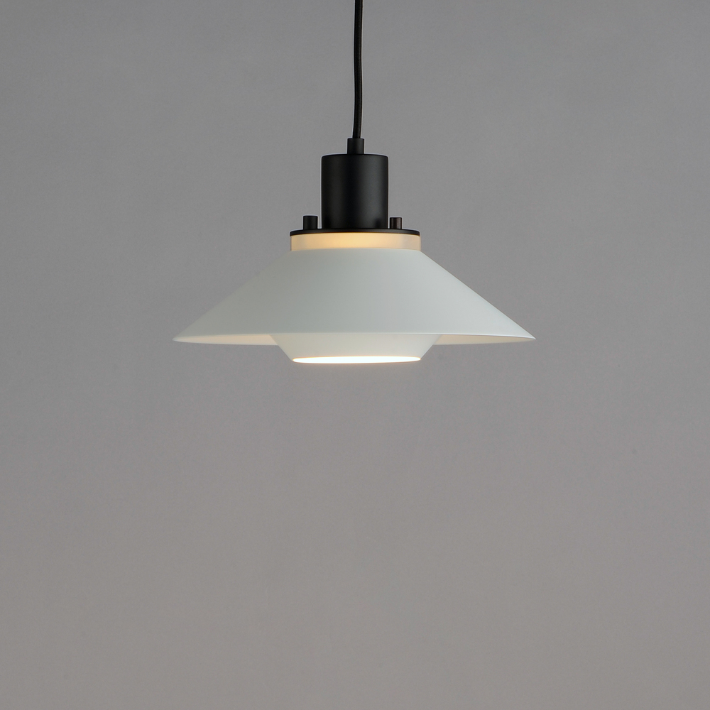 Influenced by early modern Scandinavian design, the Oslo pendants feature a light reveal above the shade as well as an inner shade that reduces glare and creates an interesting lighting effect. Finished in a combination of Matte White shades with Matte Bla