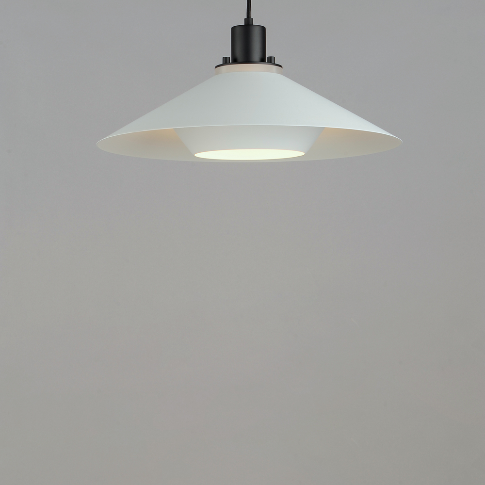 Influenced by early modern Scandinavian design, the Oslo pendants feature a light reveal above the shade as well as an inner shade that reduces glare and creates an interesting lighting effect. Finished in a combination of Matte White shades with Matte Bla
