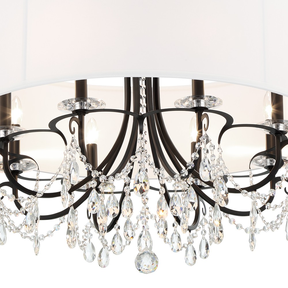 Classic like a timeless piece of jewelry, the Othello dazzles with traditional glamour. This elegant fixture is decorated with swags of faceted cut crystal jewels optimally cut for awe-inspiring sparkle and surrounded by a white silk drum shade to create a diffused lighting experience. These fixtures add the perfect bit of glam to any room and are sure to catch the eye and the light.